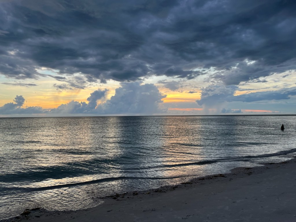 The reflections from the sky appeared as bands of rays accross the Gulf of Mexico. Soon the rays disappeared as the summer storms rolled in,