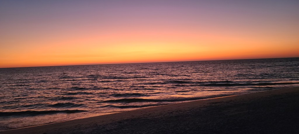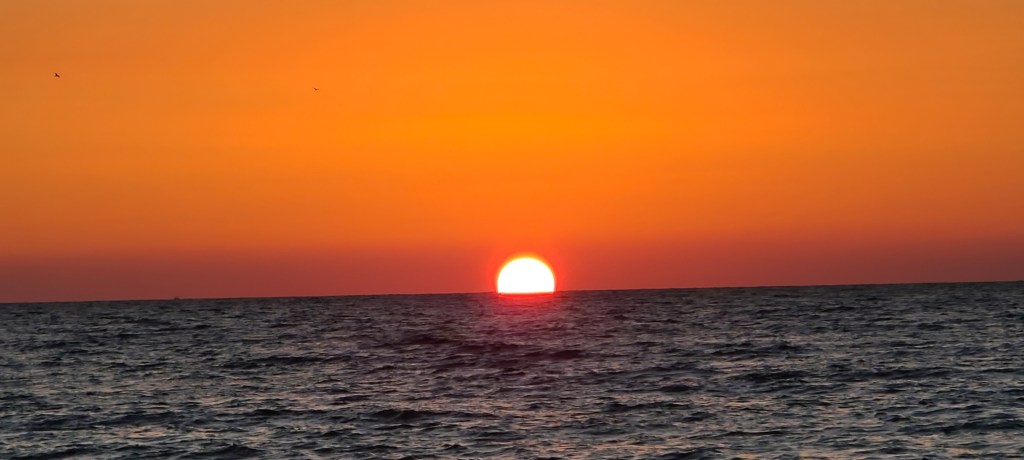 The equioxal sunset from the beach shore last nigh did not disappoint as it was free of clouds and alive with vivid colors.